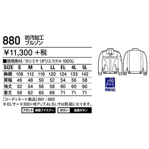 他の画像を見る 自重堂 DESK 作業服 880 ブルゾン 秋冬 メンズ 作業着 ワークウエア 通年 上着 おしゃれ かっこいい 人気 企業 法人 ワーク 作業 工場 外作業 ワークユニフォーム 仕事 土木 工事 現場 特別価格 ¥ 7,139 税込 〜 特別価格 ¥ 税込 防汚加工で清潔・快適ワークをサポート。 しなやかで光沢感のある素材に、防汚(SR)加工を施すことで付着した汚れが洗濯で落ちやすく、清潔感を持続させます。 詳細を見る お気に入りに登録する