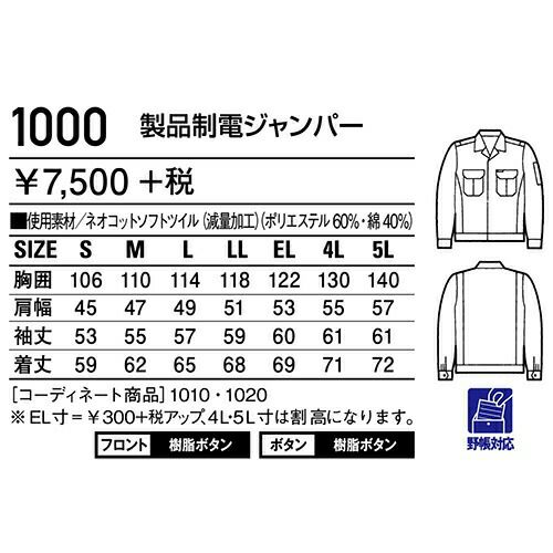 他の画像を見る 自重堂 DESK 作業服 840 ブルゾン 秋冬 メンズ 作業着 ワークウエア 通年 上着 おしゃれ かっこいい 人気 企業 法人 ワーク 作業 工場 外作業 ワークユニフォーム 仕事 土木 工事 現場 特別価格 ¥ 8,459 税込 〜 特別価格 ¥ 税込 チリやホコリを嫌うデリケートワークを支える低発塵ユニフォーム。 シンプルなデザインに秘めた上質の二重織り素材「リバーセルTM」。 チリやホコリの原因になる毛羽発生を抑え、JIS規格の帯電防止基準をクリア、ウオッシュ&ケアにも優れ、ハード&ソフトワークの必須ペアコーディネートアイテムです。 詳細を見る お気に入りに登録する