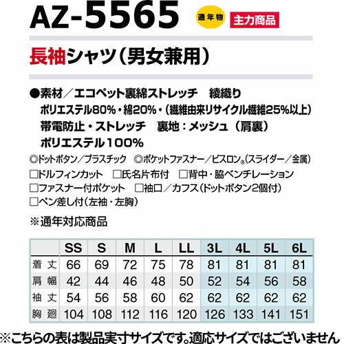 他の画像を見る アイトス AZ-5575 長袖シャツ(薄地) AITOZ 作業服 作業着 長袖 ワークウエア ボタンダウン シャツ ワークシャツ 薄手 秋冬 メンズ レディース 男女兼用 ワークウェア 帯電防止 裏メッシュ 特別価格 ¥ 4,580 税込 〜 特別価格 ¥ 税込 環境に配慮した素材と安全を考慮したデザイン 腕や肩の動きやすさを追求したムービンカットがさらに進化。 詳細を見る お気に入りに登録する