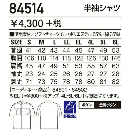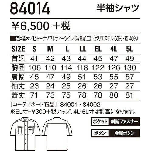 他の画像を見る 作業服 半袖シャツ Asahicho 旭蝶繊維 半袖シャツ E058 作業着 春夏作業着 作業服 半袖 春夏 特別価格 ¥ 4,895 税込 〜 特別価格 ¥ 税込 快適ヨコのびストレッチ素材 詳細を見る お気に入りに登録する