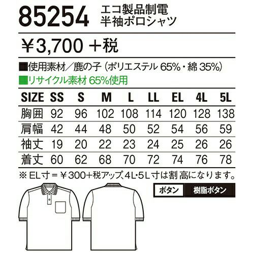 他の画像を見る 自重堂 作業服 85254 半袖ポロシャツ 春夏 ユニセックス 作業着 半袖 ワークウエア ポロシャツ 特別価格 ¥ 2,244 税込 〜 特別価格 ¥ 税込 爽やかさが映えるポロシャツは、ワークシーンにも最適。 詳細を見る お気に入りに登録する