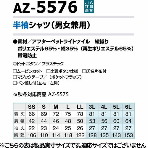 他の画像を見る アイトス AZ-5376 半袖シャツ AITOZ 作業服 作業着 半袖 ワークウエア シャツ 春夏 メンズ レディース 男女兼用 ワークウェア 帯電防止 特別価格 ¥ 3,700 税込 〜 特別価格 ¥ 税込 制電素材使用。エコマーク対応。 無地版も加わりさらにパワーアップ。実用新案「スイング スリーブ」で動きラクラク。 詳細を見る お気に入りに登録する