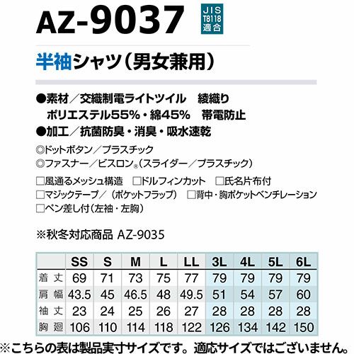 他の画像を見る アイトス AZ-9037 半袖シャツ AITOZ 作業服 作業着 半袖 ワークウエア シャツ 春夏 メンズ レディース 男女兼用 ワークウェア 帯電防止 抗菌 防臭 消臭 吸汗 速乾 通気性 特別価格 ¥ 4,530 税込 〜 特別価格 ¥ 税込 部屋干しできるワークウェア、オンリーアイトス時乾短縮。帯電防止T8118適合商品。 詳細を見る お気に入りに登録する