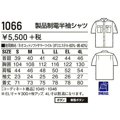 他の画像を見る 自重堂 作業服 45314 半袖シャツ 春夏 ユニセックス メンズ・レディース対応 作業着 半袖 ワークシャツ 特別価格 ¥ 4,994 税込 〜 特別価格 ¥ 税込 クールビズ対応のハイテク素材「アゼック」使用のペアユニフォーム。 室内温度28℃対応の快適素材「アゼック」を使用しているので、 ベタつきにくくサラッと感をキープ。 抜群の通気性で汗による不快感を軽減します。 詳細を見る お気に入りに登録する