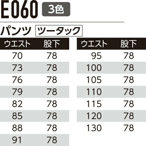他の画像を見る 作業服 パンツ スラックス Asahicho 旭蝶繊維 パンツ(ツータック) E060 作業着 春夏作業着 作業服 スラックス 春夏 特別価格 ¥ 4,939 税込 〜 特別価格 ¥ 税込 快適ヨコのびストレッチ素材 詳細を見る お気に入りに登録する