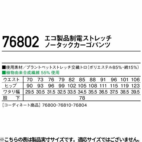 他の画像を見る ジーベック XEBEC 1776 エコTCストレッチカーゴパンツ 通年 春夏用 動きやすい 接触冷感 作業服 作業着 作業パンツ 長ズボン 制電 速乾 吸汗 ストレッチ エコ素材 環境にやさしい エコマーク 定番 工事 土木 塗装 作業ズボン ワークパンツ 大きいサイズ 特別価格 ¥ 3,399 税込 〜 特別価格 ¥ 税込 環境に優しい植物由来制電対応T/Cストレッチ ストレッチ性に優れたエコロジー素材『Sorona』を使用し、20%を超える高い伸長率で動きやすく、フラットに仕上げることでヒンヤリとした着心地を実現しました。帯電防止作業服JIS T8118にも適合し様々な職種で安心してご着用いただけるシリーズです。 詳細を見る お気に入りに登録する
