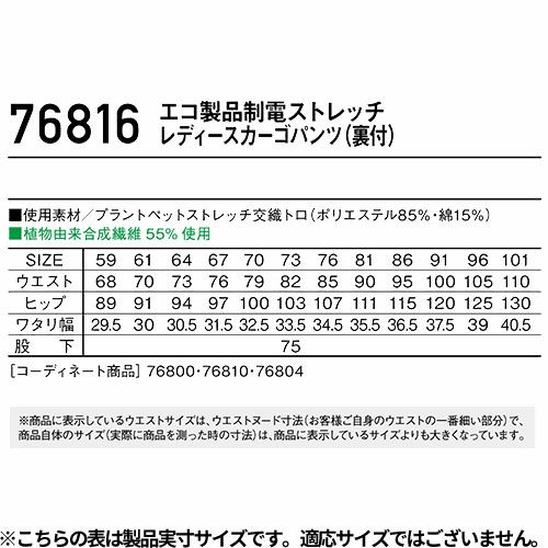 他の画像を見る ジーベック XEBEC 1779 エコTCストレッチレディスカーゴパンツ 通年 春夏用 動きやすい 接触冷感 女性用 レディース 作業服 作業着 作業パンツ 長ズボン 制電 速乾 吸汗 ストレッチ エコ素材 環境にやさしい エコマーク 定番 工事 作業ズボン ワークパンツ 大きいサイズ 特別価格 ¥ 3,399 税込 〜 特別価格 ¥ 税込 環境に優しい植物由来制電対応T/Cストレッチ ストレッチ性に優れたエコロジー素材『Sorona』を使用し、20%を超える高い伸長率で動きやすく、フラットに仕上げることでヒンヤリとした着心地を実現しました。帯電防止作業服JIS T8118にも適合し様々な職種で安心してご着用いただけるシリーズです。 詳細を見る お気に入りに登録する