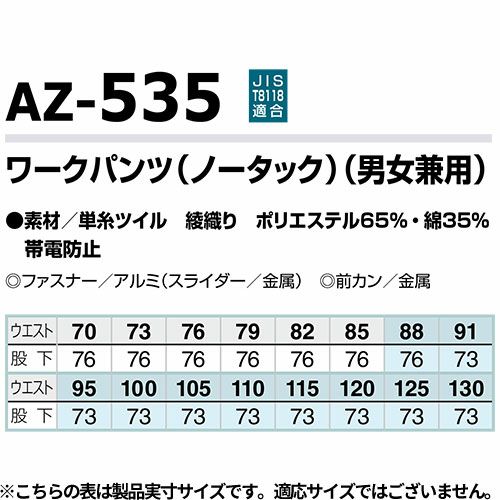他の画像を見る アイトス AZ-535 ワークパンツ ノータック AITOZ 作業服 作業着 腿ポケット無 ボトムス スラックス パンツ ズボン メンズ レディース 男女兼用 春夏 帯電防止 特別価格 ¥ 3,520 税込 〜 特別価格 ¥ 税込 ワーキングウェアの原点ともいえるベーシックタイプ。永く愛用され続ける必着アイテム。 詳細を見る お気に入りに登録する