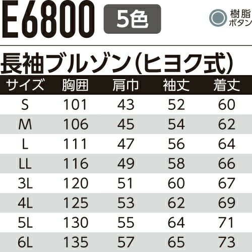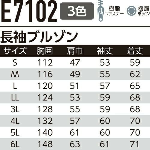 他の画像を見る 作業服 ブルゾン Asahicho 旭蝶繊維 長袖ブルゾン E6902 作業着 春夏作業着 作業服 ブルゾン 春夏 特別価格 ¥ 5,390 税込 〜 特別価格 ¥ 税込 ソフト加工×光触媒防汚加工 セーフティウェア(E7902シリーズ 反射材付き)とコーディネート可能です。 詳細を見る お気に入りに登録する