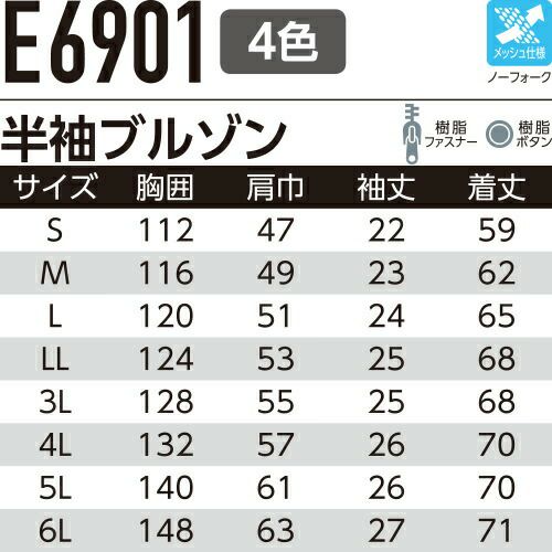 他の画像を見る 作業服 ブルゾン Asahicho 旭蝶繊維 半袖ブルゾン E6901 作業着 春夏作業着 作業服 ブルゾン 春夏 特別価格 ¥ 5,181 税込 〜 特別価格 ¥ 税込 ソフト加工×光触媒防汚加工 セーフティウェア(E7902シリーズ 反射材付き)とコーディネート可能です。 詳細を見る お気に入りに登録する