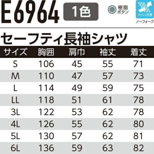 他の画像を見る 作業服 シャツ 高視認 Asahicho 旭蝶繊維 セーフティ長袖シャツ E6964 安全服 反射材付 作業着作業着 作業服 高視認 特別価格 ¥ 4,829 税込 〜 特別価格 ¥ 税込 防汚加工&再帰性反射テープ 夜間の視認性を高める、再帰性反射材をブルゾンとパンツに使用。夜間作業の安全を確保します。 詳細を見る お気に入りに登録する