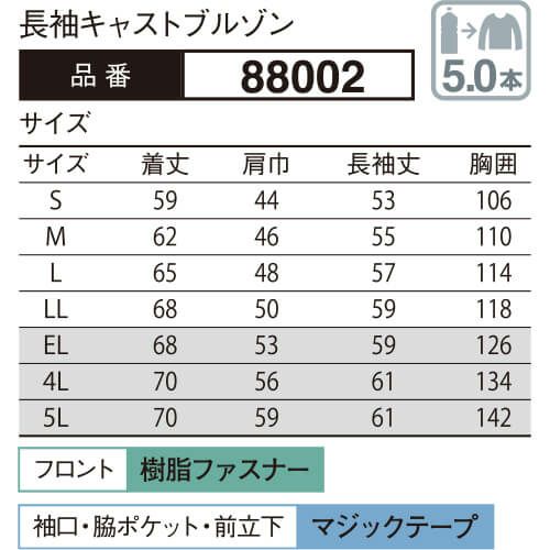 他の画像を見る 作業服 ブルゾン Asahicho 旭蝶繊維 長袖ブルゾン E7302 作業着 春夏作業着 作業服 ブルゾン 春夏 特別価格 ¥ 5,995 税込 〜 特別価格 ¥ 税込 機能満載!JIS帯電防止ワークウェアの決定版!! ヨコのびストレッチ・JIS帯電防止・防汚加工、耐久性と快適性を兼ね備えたワークウェア 詳細を見る お気に入りに登録する
