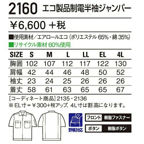 他の画像を見る 自重堂 TomoeSAKURA 作業服 2160 半袖ジャンパー 春夏 メンズ 作業着 ワークウエア ブルゾン 特別価格 ¥ 4,158 税込 〜 特別価格 ¥ 税込 抜群の通気性「エアロールエコ」で夏場のワークを快適に演出。 汗が気になる夏場を清々しく過ごすための強い味方。通気性とシャリ感が心地よいロングセラー商品です。 詳細を見る お気に入りに登録する