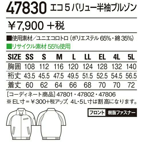 他の画像を見る 自重堂 作業服 47830 半袖ブルゾン 春夏 ユニセックス メンズ・レディース対応 作業着 ブルゾン 特別価格 ¥ 5,170 税込 〜 特別価格 ¥ 税込 多機能ペアユニフォームでどんなニーズにも対応。 吸汗速乾加工を施し、ストレッチ機能を付加したエコ素材。 様々なニーズに対応したユニフォームです。 詳細を見る お気に入りに登録する