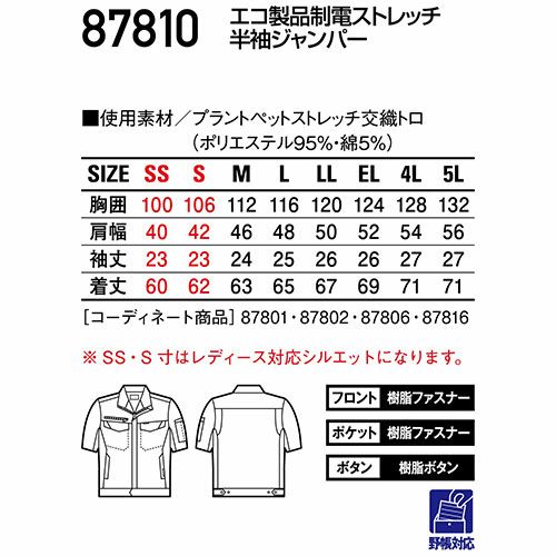 他の画像を見る 作業服 ブルゾン 自重堂 エコ製品制電ストレッチ半袖ジャンパー 87810 作業着 春夏 エコマーク認定 ストレッチ 帯電防止 消臭 抗菌 ペアコーディネート 特別価格 ¥ 4,587 税込 〜 特別価格 ¥ 税込 植物由来PET繊維「PLANPET」を使用しSDGsの達成に貢献できる環境配慮型のワークウェア ・製品制電 帯電防止JIS T8118適合商品・ストレッチ性のある素材でスムーズな動きをサポート・「ウイングアームII」脇から袖付けまでのオリジナル縫製により脇下のつっぱり感がすっきり解消・エコ 植物由来PET繊維使用 詳細を見る お気に入りに登録する