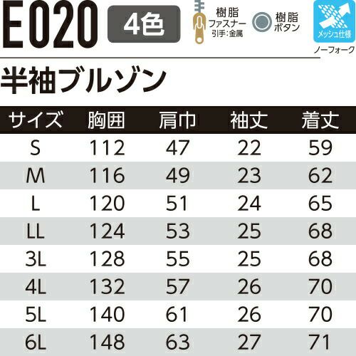 他の画像を見る 作業服 ブルゾン Asahicho 旭蝶繊維 半袖ブルゾン E020 作業着 春夏作業着 作業服 ブルゾン 春夏 特別価格 ¥ 5,236 税込 〜 特別価格 ¥ 税込 二層構造糸で涼感抜群!防縮・防シワでソフトな着心地!! 詳細を見る お気に入りに登録する