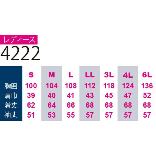 他の画像を見る 作業服 レディース 女性 桑和 SOWA レディース長袖スモック 4222 作業着 通年 秋冬作業着 作業服 レディース 女性用作業着 おしゃれ かっこいい 企業 法人 ワーク 作業 ワークユニフォーム ワークウェア ユニフォーム 仕事 土木 特別価格 ¥ 5,060 税込 〜 特別価格 ¥ 税込 エコ素材にJIS T8118の制電性をプラスしたレディース対応作業服 女性にもおすすめなナチュラルなカラー展開 詳細を見る お気に入りに登録する