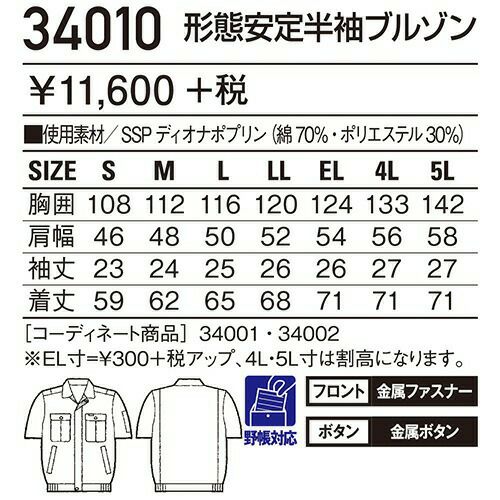 他の画像を見る 自重堂 DESK-WJ 作業服 34010 半袖ブルゾン 春夏 メンズ 作業着 ワークウエア ブルゾン 特別価格 ¥ 7,018 税込 〜 特別価格 ¥ 税込 上質な着心地と優れた形態安定性 SSP加工による優れたイージーケア性と二層構造糸が織りなす 上質な着心地。 つややかな光沢感と爽やかな肌触りのハイクオリティウエア。 詳細を見る お気に入りに登録する