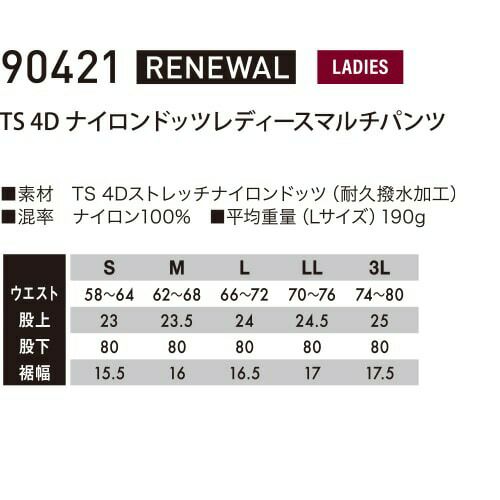 他の画像を見る 作業服 レディース パンツ 藤和 TS Design NEO撥水ドットエアーステルスレディースパンツ 90421 作業着 春夏 超耐久撥水 超軽量 ストレッチ 形態安定 ビジネス スーツ 特別価格 ¥ 4,860 税込 〜 特別価格 ¥ 税込 TS 4D×通気性。ストレッチ性と通気性を融合したステルス夏版 独自の織物構造で通気口を発現させたTS 4Dストレッチナイロンドッツ、超耐久撥水「NEO撥水」 詳細を見る お気に入りに登録する