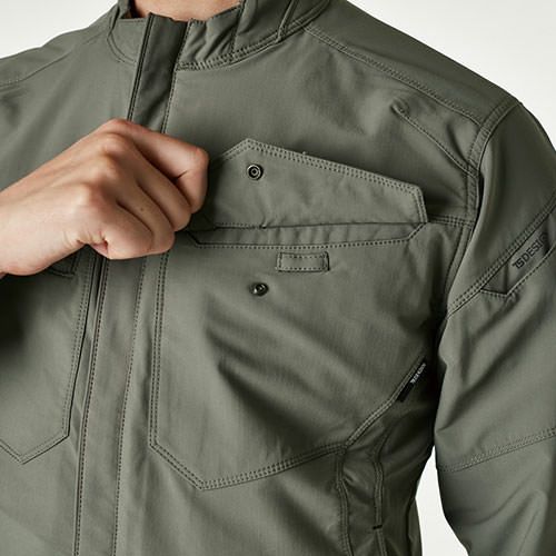 他の画像を見る 作業服 ブルゾン 藤和 TS Design エコハイブリッドダブルクロスジャケット 4616 作業着 ジャンパー ストレッチ 通年 秋冬 帯電防止 軽量 軽い 形態安定 男女兼用 おしゃれ かっこいい 人気 ワーク企業 法人 作業 工場 外作業 特別価格 ¥ 5,800 税込 〜 特別価格 ¥ 税込 ナイロンに見える新感覚の裏綿素材 ・「パルパーエコ」を裏綿に使ったユニチカとの共同開発の二重織組織である独自素材「TSエコハイブリッドダブルクロス」を使用・高品質の日本製素材・ストレッチ(約15%横方向)、SR加工、軽量、UVカット・ナイロン調のマット感とフラットな表面感・ステッチを太番手にしたアクセントと細身シルエット・袖口はオリジナルドットボタンアジャスター付・ユニセックス仕様 詳細を見る お気に入りに登録する