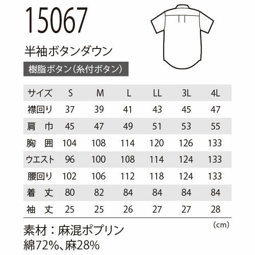 他の画像を見る 作業服 半袖シャツ ジーベック XEBEC ボタンダウン半袖シャツ 15067 作業着 春夏作業着 作業服 半袖 春夏 特別価格 ¥ 4,400 税込 麻混ならではの清涼感と着心地麻混糸を使用し清涼感のある生地に仕上げました。綿の吸湿性と麻のシャリ感、通気性。両方の良い所をミックスしたクールビズシャツです。 立体的で美しい襟しっかりとした形状と適度な高さで、スッキリと立つ美しい襟仕立てで、ノーネクタイをカッコよく着こなします。形態安定加工シワや型くずれになりにくく、洗濯後のお手入れが簡単な形態安定加工。毎日の洗い替えもラクです。 詳細を見る お気に入りに登録する
