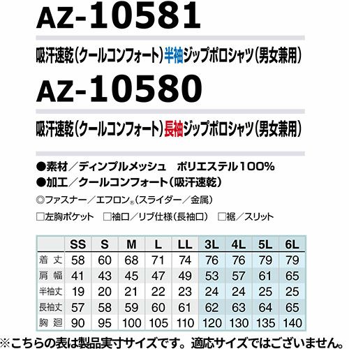 他の画像を見る アイトス AZ-10581 吸汗速乾(クールコンフォート)半袖ジップポロシャツ(男女兼用) AITOZ ポロシャツ 半袖 メンズ レディース 作業着 作業服 ワークウェア 吸汗 速乾 涼しい 特別価格 ¥ 1,991 税込 〜 特別価格 ¥ 税込 吸汗速乾に優れた爽快な着心地のジップポロシャツ。 詳細を見る お気に入りに登録する