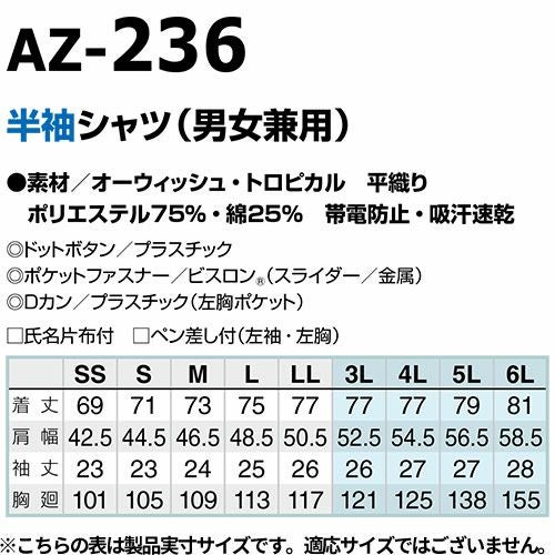 他の画像を見る アイトス AZ-236 半袖シャツ AITOZ 作業服 作業着 半袖 ワークウエア シャツ 春夏 メンズ レディース 男女兼用 ワークウェア 帯電防止 吸汗 速乾 特別価格 ¥ 4,370 税込 〜 特別価格 ¥ 税込 吸汗速乾でお手入れラクラク。軽くて通気性抜群東レの清涼素材「オーウィッシュ」使用。 詳細を見る お気に入りに登録する