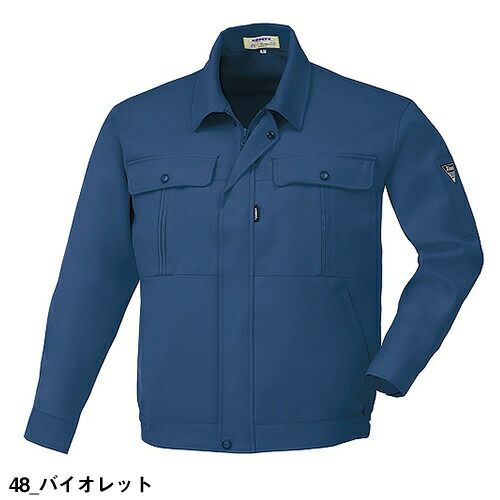 ポリエステル100%のストレッチサージに、火熱に強い難溶融加工、撥水加工、防汚加工、形状安定加工などを施した多機能ワークウェアは、工業製品や製品加工などの職場で多く利用されています。ブルゾンはデザインの異なる2タイプをラインナップ。