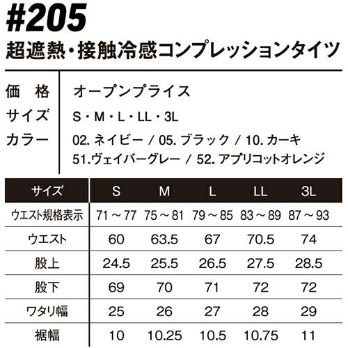 ナノレベルの冷感素材と超遮熱機能でマイナス13.8℃を実現!大人気の冷感タイツから最新モデルが登場 ●ナノレベルまで砕いた冷感鉱物を繊維内部に練り込むことで、一般基準値より1.6倍の最強接触冷感を実現●超遮熱機能で脅威のマイナス13.8℃を実現!屋外作業で暑さを感じにくく、疲労感を軽減します●脅威の99.9%UVカット機能●優れた吸汗速乾性でさらっとした着心地●汗をかきやすい脇や裾部分は通気性の高いメッシュ素材を使用●ロングセラー人気商品の新作モデル!最新のトレンドを抑えたおしゃれなデザインでレベルアップして登場