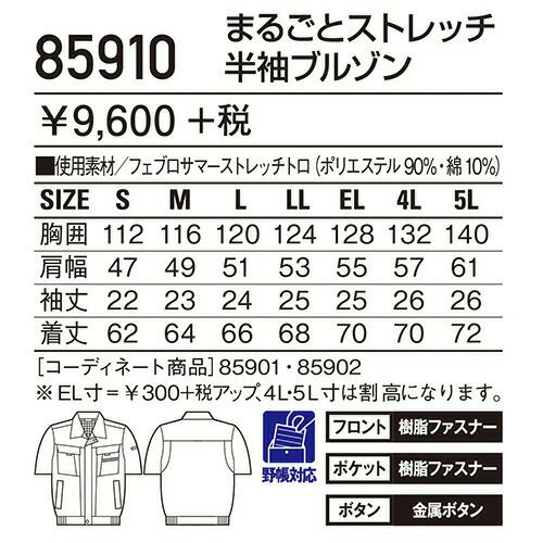 他の画像を見る 自重堂 作業服 85910 半袖ブルゾン 春夏 メンズ 作業着 ワークウエア ブルゾン 特別価格 ¥ 6,072 税込 〜 特別価格 ¥ 税込 ワークシーンを変える。まるごとストレッチの性能。 動きやすさを徹底的に追求したまるごとストレッチ。 誰でも着こなせる飽きのこないベーシックなスタイルも魅力です。 詳細を見る お気に入りに登録する