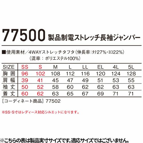 他の画像を見る 作業着 作業服 ブルゾン 春夏 Z-DRAGON 製品制電ストレッチ長袖ジャンパー 77500 作業着 春夏 SDGs エコロジカル リサイクル素材 再生糸 男女兼用 シャープなスタイル スタイリッシュ カジュアル 特別価格 ¥ 4,189 税込 〜 特別価格 ¥ 税込 スポーティな機能性をスタイルを追求したハイスペックワークウェア ●上下左右の4方向に自在に伸縮する4WAYストレッチタフタを使用しあらゆる動きに対応●マットな質感と吸汗速乾加工が快適な着心地を提供●スリムフィットテーパード仕様によりスポーティスタイルを演出●優れた帯電防止性を備えるJIS T81118適合商品●男女ユニセックスの着用対応 詳細を見る お気に入りに登録する