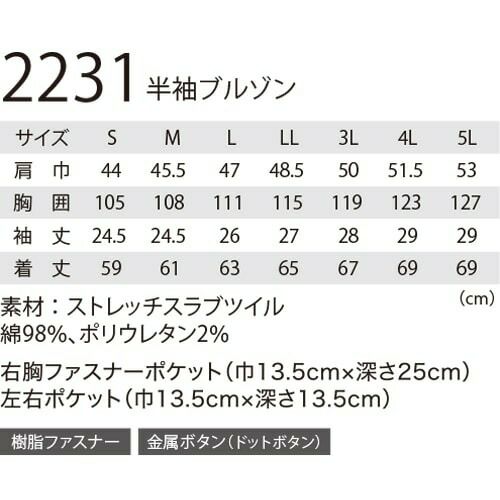 他の画像を見る 作業服 ブルゾン ジーベック XEBEC 現場服ストレッチ半袖ブルゾン 2231 作業着 上着 ブルゾン フルハーネス対応 ひじ部分立体裁断で動きをサポート 春夏 2020年新作 新商品 特別価格 ¥ 5,590 税込 〜 特別価格 ¥ 税込 スタイリッシュで動きやすいフルハーネスにも対応した現場服!大小7つのポケットで収納たっぷり!! 光沢のあるスラブストレッチが新しい。バイオウォッシュのソフトな肌触りと、ストレッチ立体パターンとの相乗でストレスフリーな着心地。墜落制止用器具をしたままでも使えるポケットや物の落下を防止するファスナーポケットを装備。 詳細を見る お気に入りに登録する