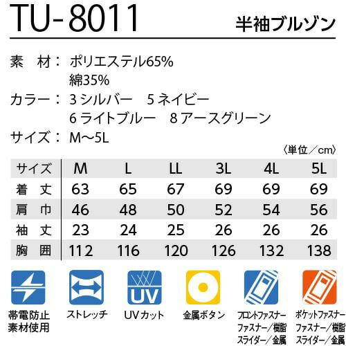 他の画像を見る 作業服 ブルゾン タカヤ商事 TAKAYA 半袖ブルゾン TU-8011 作業着 春夏作業着 作業服 ブルゾン 春夏 特別価格 ¥ 5,830 税込 〜 特別価格 ¥ 税込 1.高品質の日本製素材2.夏場に快適なストレッチトロピカル組織3.ロングセラーのベーシックモデル 詳細を見る お気に入りに登録する