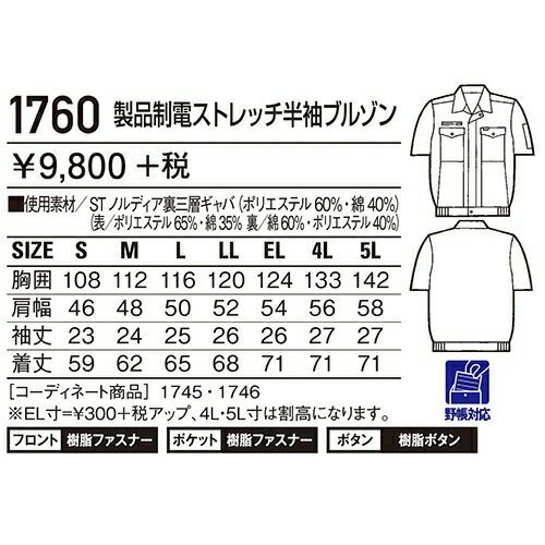 他の画像を見る 自重堂 TomoeSAKURA 作業服 1760 半袖ブルゾン 春夏 メンズ 作業着 ワークウエア ブルゾン 特別価格 ¥ 5,973 税込 〜 特別価格 ¥ 税込 吸汗速乾性とタフさを追求した一着。 夏場のワークでもっとも気になるのは、汗によるベトつき。 吸汗・速乾性に優れた性能を発揮する三層構造糸「ST-ノルディア」を採用することで、汗に対する強さを証明。 ストレッチ性と丈夫さも兼ね備えたロングセラー。 詳細を見る お気に入りに登録する