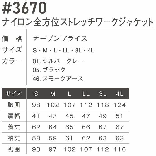 他の画像を見る アイズフロンティア ブルゾン ナイロン全方位ストレッチワークジャケット #3670 作業服 作業着 春夏 I'Z FRONTIER 軽量 ドライ ストレッチ アウトドア スポーツ ストリート スタイリッシュ 動きやすい カッコいい カジュアル 快適 特別価格 ¥ 6,050 税込 ワールドクラスのハイマテリアルを惜しげもなく使用したナイロンワークウェアの最高峰モデル ・大好評を博した#3482(ジョガーパンツ)等と同素材を使用したセットアップワークウェアのニューモデルです・アウトドア、スポーツ、ストリートカジュアルの要素を絶妙なバランスで融合したアイズフロンティアならではのデザイン性の高い1着。パンツ単体ではファン付きウェアとの相性も抜群・素材は世界トップクラスのナイロン素材メーカーデリカシー社製を採用。高品質なフルダルナイロン糸を使用することにより、ハイブランドアウトドアウェアと同等の高級感を実現。淡色シルバーグレーも抜群の抜け防止効果を発揮します。・伸長率タテ方向に約50%、ヨコ方向に約32%、伸長回復率(1時間後)タテ94%,ヨコ89%を誇る驚異のストレッチ性能を発揮。抜群の動き易さを実現します。・一般強度をクリアした薄手素材を採用し、真夏のワークシーンに快適さをプラスします。・着用時やお洗濯後のシワも少なく、手間いらずのイージーメンテナンスも大きな魅力です。・ビスロンファスナー、ドット釦等は国産YKK社製を使用。細部にまで品質に拘っています。 詳細を見る お気に入りに登録する