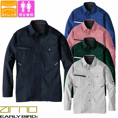 他の画像を見る 作業服 長袖シャツ ビッグボーン 長袖シャツ EBA6255 作業着 春夏 制電 反射 ユニセックス 男女共用 ストレッチ 国産素材 特別価格 ¥ 5,800 税込 〜 特別価格 ¥ 税込 SDGs#12 つくる責任つかう責任ファッション業界が抱える衣類の大量廃棄問題を解決するためにサーキュラーエコノミー(循環型経済)の実現を目指すRENUプロジェクトから生まれたモデル ■ワークシーンの定番、ポリエステルと綿の耐久ストレッチ素材■緯糸に特殊仮撚り技術による熱を加えるとバネのように伸縮性が生まれるクラボウ品質のRENUサマーストレッチツイル■新設計のEZラグランアームで腕の動きをサポート、前後上下の動きに対し抜群の動きやすさとつっぱり感を軽減■JIST8118規格適合の製品制電。衣類の静電気を外部へ出すよう生地に導電繊維を織り込みファスナー・ボタンも樹脂素材を使用■豊富な収納ポケットと反射素材付き 詳細を見る お気に入りに登録する