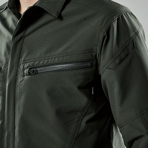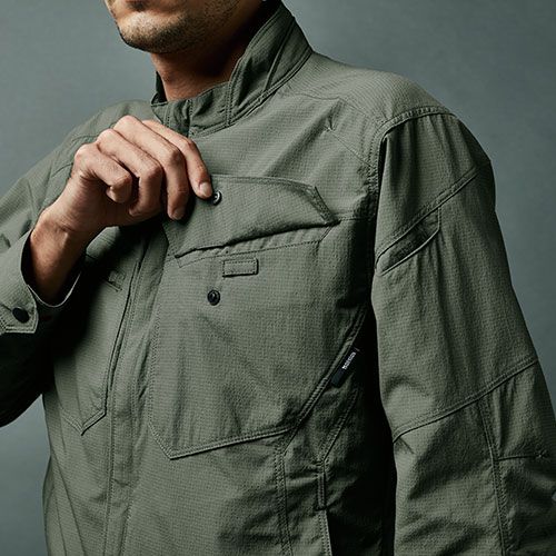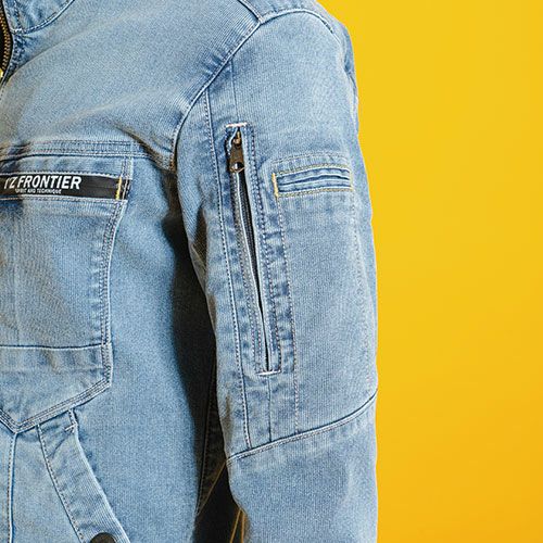 他の画像を見る アイズフロンティア ブルゾン デニム ドライストレッチ3Dドビーワークジャケット #7020 作業服 作業着 春夏 I'Z FRONTIER 軽量 ドライ ストレッチ デニム風 スタイリッシュ 動きやすい カッコいい カジュアル ライダース 特別価格 ¥ 7,128 税込 アイズフロンティアが見据えるワークウェアの新たな地平纏え、シーンに縛られないその孤高の存在感を ・立体的な織り構造により、汗ばむ季節でもお肌への点接触を実現する3Dドライストレッチ素材を採用。一般基準を大きく凌ぐ高い吸水性と速乾性能を発揮します。・紫外線遮蔽率は最高レベルの99%/UPF50を誇り、過酷な夏場の疲労度軽減が期待されます。・綿高混率素材でありながら、特殊な素材構造によるシワ軽減と、適度な伸長回復率(1時間後約81%)により、ハリのある型崩れの少ないスタイリングをキープします。・適度な伸長率(ヨコ・約22%)と、洗練された3Dカッティングでスタイリッシュなシルエットと動き易さを両立。・ライトウェイトの素材でありながら、基準値約1.5倍の引裂き強度を併せ持ちます。・身生地同系色のデザインラインテープを採用したスタンダードモデル#7020&#7022と、ビッグ合皮ワッペンやラバープリント等のデコレーションをふんだんに使用し、圧倒的な存在感を発揮する限定生産モデル#7028&#7029の異なる個性の2タイプをラインナップ。 詳細を見る お気に入りに登録する