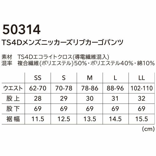 他の画像を見る 作業服 カーゴパンツ 藤和 TS Design TS4Dメンズニッカーズリブカーゴパンツ 50314 作業着 春夏 ストレッチ 帯電防止 裾リブ ウエストゴム カッコいい おしゃれ 特別価格 ¥ 6,060 税込 点接触でドライタッチ通気性とストレッチ性を両立ニッカーズリブカーゴパンツ ・タテ・ヨコに伸びるストレッチ性(約15%)・点接触でドライなタッチ感・裾リブ仕様・導電繊維混入で静電気もケア・製品エコ率10%のエコ素材を使用・ウエストゴム仕様 詳細を見る お気に入りに登録する
