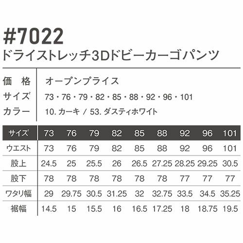 他の画像を見る アイズフロンティア カーゴパンツ デニム ドライストレッチ3Dドビーカーゴパンツ #7022 作業服 作業着 春夏 I'Z FRONTIER 軽量 ドライ ストレッチ デニム風 スタイリッシュ 動きやすい カッコいい カジュアル ライダース 特別価格 ¥ 5,588 税込 アイズフロンティアが見据えるワークウェアの新たな地平纏え、シーンに縛られないその孤高の存在感を ・立体的な織り構造により、汗ばむ季節でもお肌への点接触を実現する3Dドライストレッチ素材を採用。一般基準を大きく凌ぐ高い吸水性と速乾性能を発揮します。・紫外線遮蔽率は最高レベルの99%/UPF50を誇り、過酷な夏場の疲労度軽減が期待されます。・綿高混率素材でありながら、特殊な素材構造によるシワ軽減と、適度な伸長回復率(1時間後約81%)により、ハリのある型崩れの少ないスタイリングをキープします。・適度な伸長率(ヨコ・約22%)と、洗練された3Dカッティングでスタイリッシュなシルエットと動き易さを両立。・ライトウェイトの素材でありながら、基準値約1.5倍の引裂き強度を併せ持ちます。・身生地同系色のデザインラインテープを採用したスタンダードモデル#7020&#7022と、ビッグ合皮ワッペンやラバープリント等のデコレーションをふんだんに使用し、圧倒的な存在感を発揮する限定生産モデル#7028&#7029の異なる個性の2タイプをラインナップ。 詳細を見る お気に入りに登録する