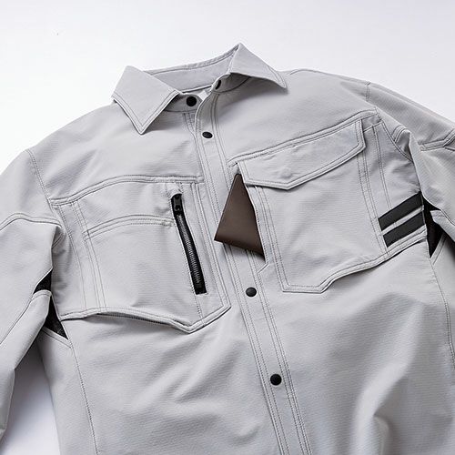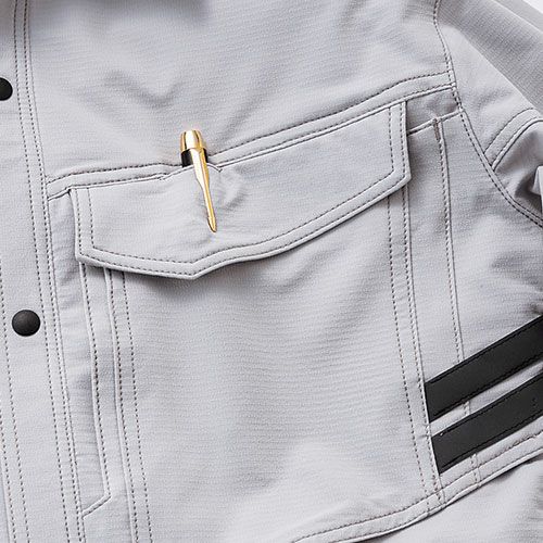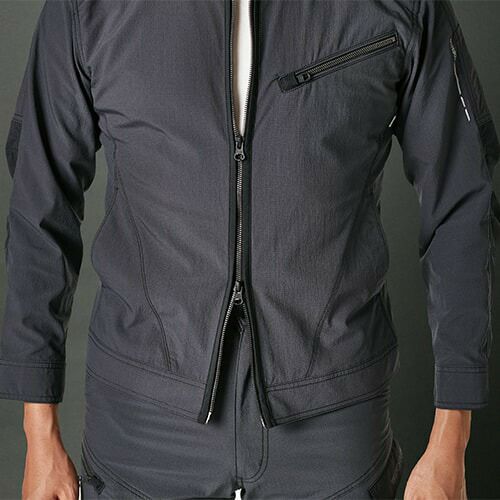 他の画像を見る 作業服 ブルゾン 自重堂 Jawin ストレッチ長袖ジャンパー 57400 作業着 春夏 ストレッチ 帯電防止 消臭 抗菌 野帳対応 カッコいい おしゃれ 特別価格 ¥ 4,631 税込 〜 特別価格 ¥ 税込 シルバーのビッグファスナーと衿高デザインが魅力 デニム調のストレッチ素材を使用しライダースジャケットテイストのデザインに仕上げたJawinの新シリーズ 詳細を見る お気に入りに登録する