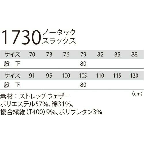 他の画像を見る 作業着 作業服 ストレッチ パンツ スラックス ジーベック XEBEC 1730 春夏 2020年新作 新商品 ズボン ユニフォーム 制服 特別価格 ¥ 4,580 税込 〜 特別価格 ¥ 税込 ストレッチ性と丈夫さを兼ね備えた新開発TC制電ストレッチ素材を使用。 詳細を見る お気に入りに登録する