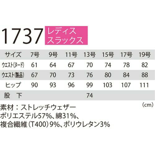 他の画像を見る 作業着 作業服 ストレッチ パンツ レディーススラックス ジーベック XEBEC 1737 春夏 2020年新作 新商品 ズボン ユニフォーム 制服 女性用 特別価格 ¥ 4,460 税込 〜 特別価格 ¥ 税込 ストレッチ性と丈夫さを兼ね備えた新開発TC制電ストレッチ素材を使用。 詳細を見る お気に入りに登録する