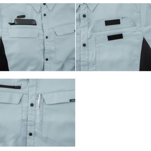 他の画像を見る 作業服 長袖シャツ ジーベック XEBEC TCストレッチ長袖シャツ 1713 作業着 春夏 ストレッチ 帯電防止 特別価格 ¥ 5,240 税込 〜 特別価格 ¥ 税込 3層ハイブリッドストレッチストレッチ性と丈夫さを兼ね備えた新開発、TC制電ストレッチ素材を使用したフルハーネス対応ポケットワークウェア。ベーシックスタイルのトップスも新たに追加され、着用にシーンもさらに広がる。 ●ストレッチ耐久性に優れたT/C複合繊維(T400)●JIS T 8118帯電防止作業服適合商品●男女ペアシリーズ 詳細を見る お気に入りに登録する