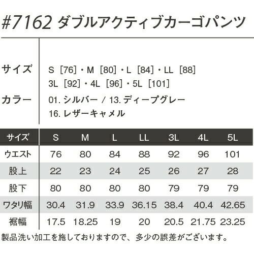 他の画像を見る アイズフロンティア カーゴパンツ ナイロン2WAYストレッチカーゴパンツ #3572 作業服 作業着 通年 I'Z FRONTIER 秋冬作業着 作業服 カーゴパンツ おしゃれ かっこいい 人気 ズボン 作業ズボン 作業パンツ 作業 工事 土木 塗装 DIY diy 特別価格 ¥ 5,775 税込 ナイロンスパンデックスが織り成す未体感の着心地が、幅広い業種のワークシーンをネクストステージに誘います! ■世界的なアウトドアウェアメーカーでも実績のある、高級2wayストレッチ素材を贅沢に使用。これまでにない新たな世界観を演出します。■縦、横両方向に伸びるツーウェイストレッチ素材により全方向への生地伸長を実現。特にタテ方向は伸長率50%を計測、ストレスのない腕の曲げ伸ばしを実現します。(カーゴパンツは異次元の履き心地を実現します!)■高級ナイロンフルダル糸を使用し、絶妙な高級感と軽量感を実現。そのほかにも防透性、UVカットなど、様々な性能を持ち合わせます。■商品裏側は点接触構造の二重織り素材により、贅沢で柔らかな着心地を実現。■ナイロン素材の特性である高い耐摩擦性など、ワークウェアとしての強度も充分に兼ね備えています。■ファスナーやドットボタンなどの各資材は国内YKK製を使用。細部にまで品質にこだわっています。 詳細を見る お気に入りに登録する
