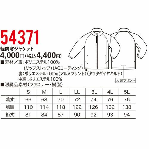 他の画像を見る ドカジャン 防寒ブルゾン 軽量 クロダルマ 軽防寒ジャケット 中綿 裏アルミ 保温 撥水 反射材 耐久性 人気 激安 最強 アウター 軽い 防寒着 パーカー ラグランスリーブ おしゃれ ワーク マン メンズ 防寒ジャンパー 作業着 暖かい 冬 54371 特別価格 ¥ 2,710 税込 〜 特別価格 ¥ 税込 中綿と背中裏アルミプリントが高い保温性を発揮する軽量防寒ジャケット。随所に反射素材を施して安全性の配慮。 詳細を見る お気に入りに登録する