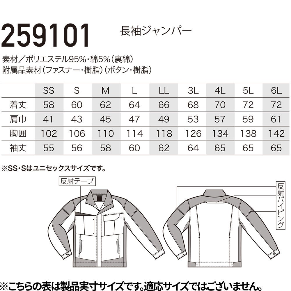 作業服 ブルゾン 長袖ジャンパー 259101 作業着 春夏 エコ 制電 反射素材 軽量 動きやすい 男女兼用 会社 企業 工場 倉庫 制服 コスパが良い 信頼性