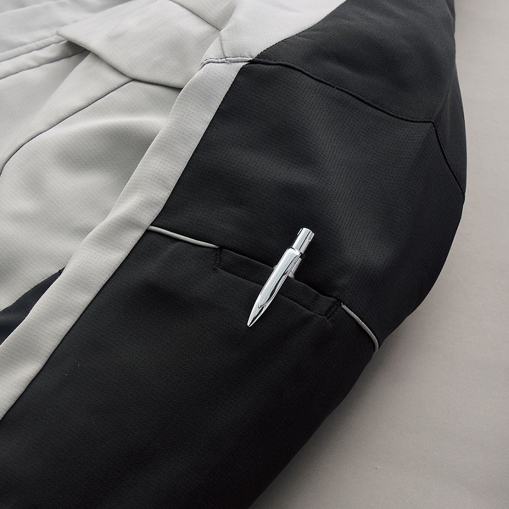 軽量・高ストレッチ・エコ素材採用ユニフォームをラインアップパンツにはブラックを追加しコーディネートも多彩に 軽くてストレッチ性に優れたエコ素材採用膝裏に反射パイピングを使用して安全性にも配慮