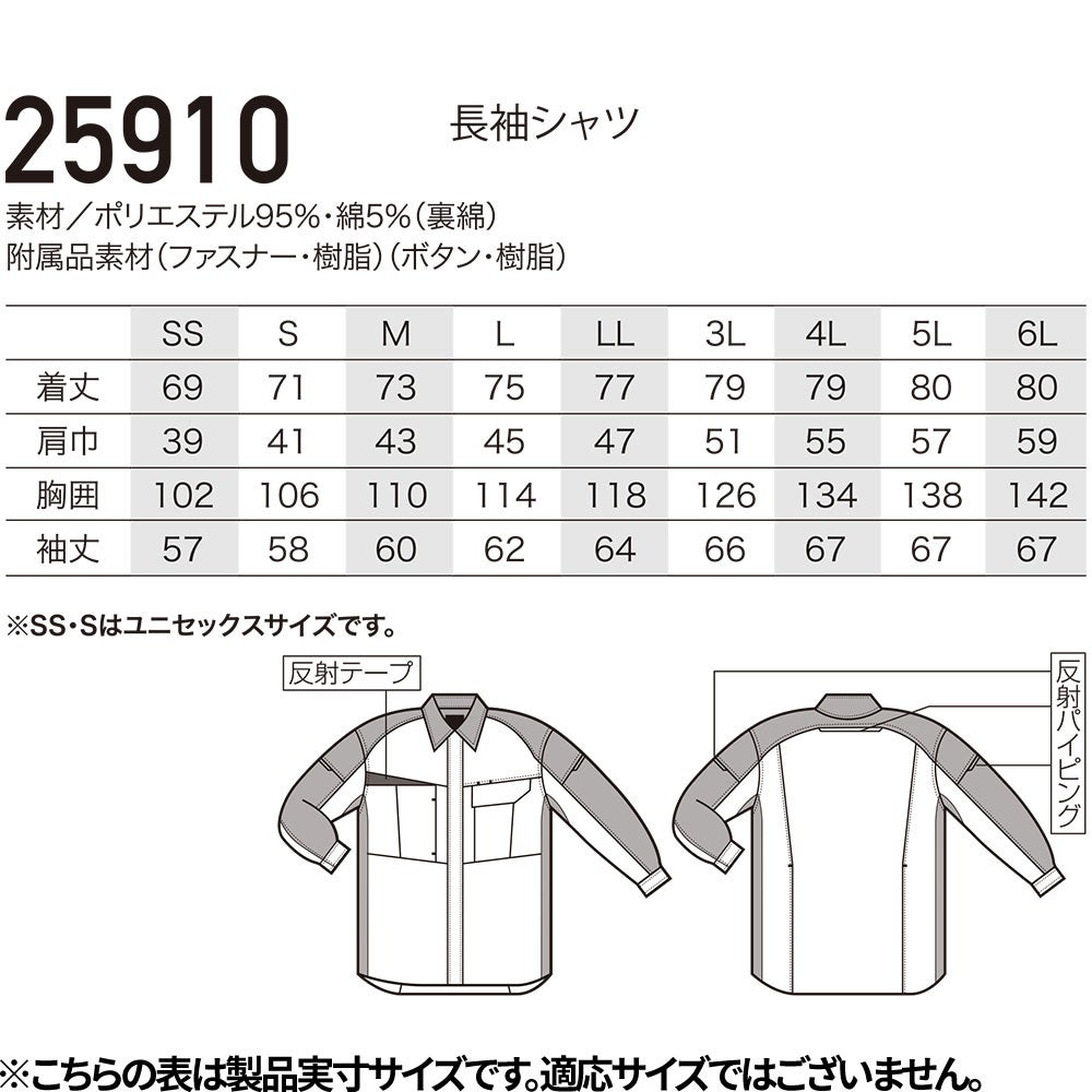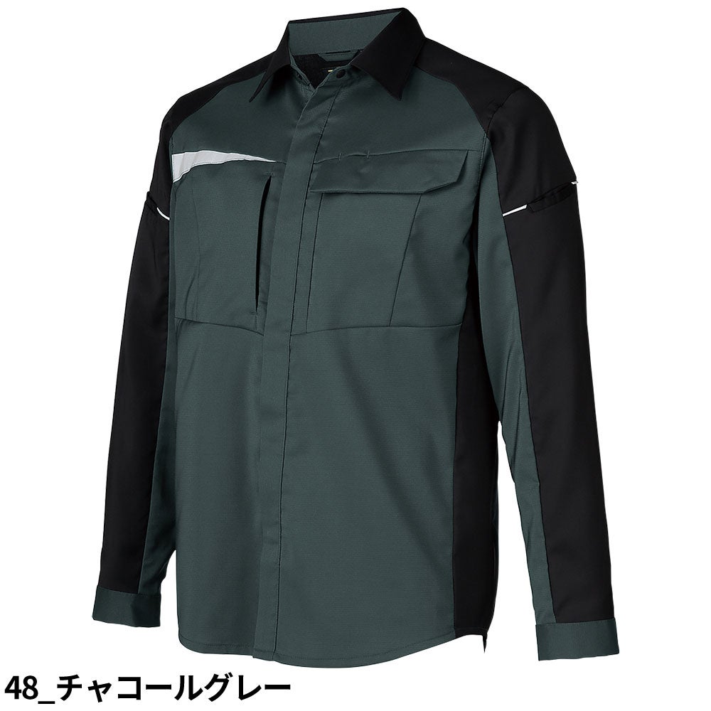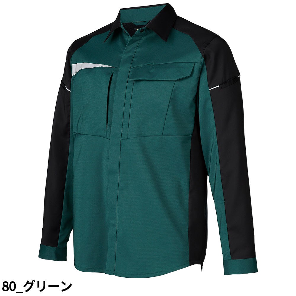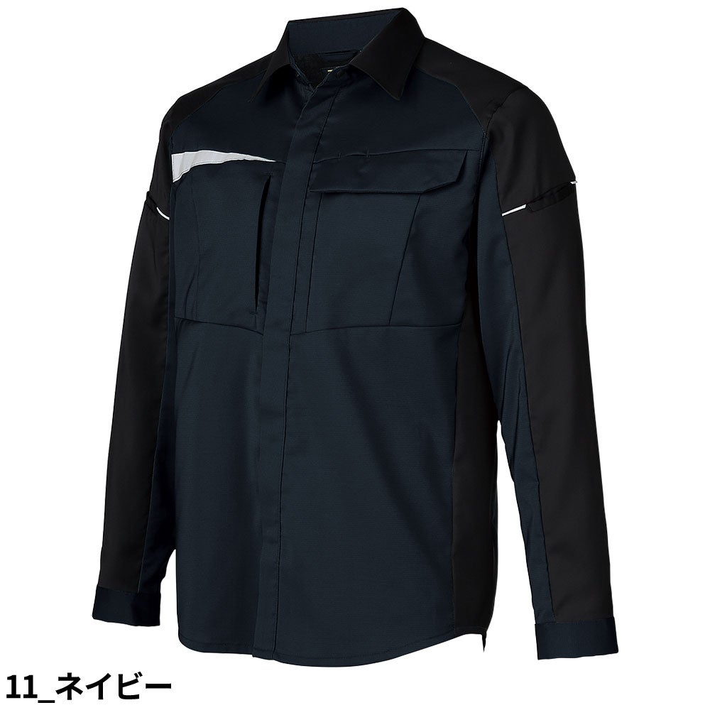 作業服 長袖シャツ 長袖シャツ 25910 作業着 春夏 エコ 制電 反射素材 軽量 動きやすい 男女兼用 会社 企業 工場 倉庫 制服 コスパが良い 信頼性