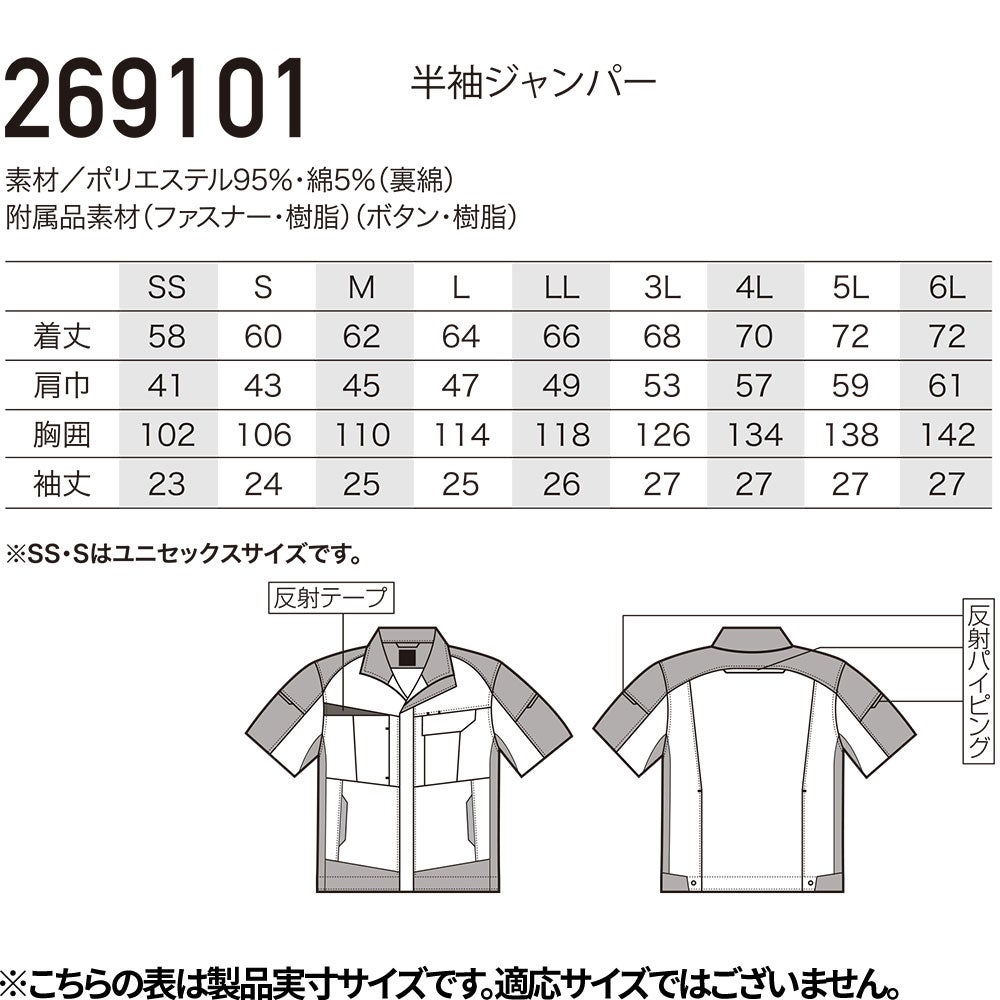 作業服 ブルゾン 半袖ジャンパー 269101 作業着 春夏 エコ 制電 反射素材 軽量 動きやすい 男女兼用 会社 企業 工場 倉庫 制服 コスパが良い 信頼性