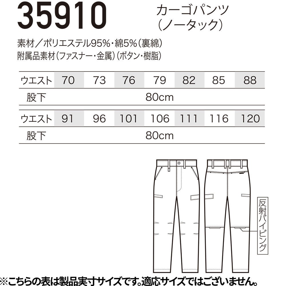 作業服 カーゴパンツ カーゴパンツ(ノータック) 35910 作業着 春夏 エコ 制電 反射素材 軽量 動きやすい 男女兼用 会社 企業 工場 倉庫 制服 コスパが良い 信頼性